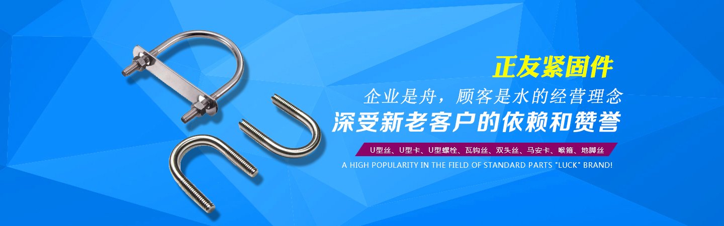 河北正友緊固件制造有限公司(原永年縣河北鋪天緣緊固件廠)坐落在永年縣河北鋪工業(yè)區(qū),地理位置優(yōu)越,交通便利。自1994年建廠至今,在各界人士的關懷和新老客戶的擁護及全廠員工的努力下,企業(yè)日益發(fā)展壯大,產品不斷更新,以U型絲、U型卡、U型螺栓、瓦鉤絲、雙頭絲、馬安卡、喉箍、地腳絲等產品的過硬質量,創(chuàng)下在標準件領域知名度較高的“正友”品牌! 為答謝新老客戶長期以來對我廠的幫助與信任,我廠在提高質量的同時,更是加強了產品售后服務的力度!以“企業(yè)是舟,顧客是水”的經營理念,鑄就“正友”日后的輝煌之路!